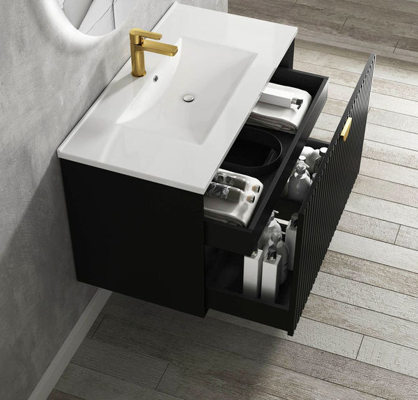 A 750mm wall hung vanity is the ideal solution for small bathrooms, giving you essential storage without overwhelming the room. The floating design keeps the floor visible, making your space feel larger and easier to clean. For even more compact options, check out powder room basins.