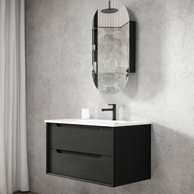 900mm Curved-Front Vanities: Rounded fronts soften edges and guide movement, while still offering full-width storage.