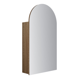 Arch Shaving Cabinet: Curved, arched doors with storage behind a sleek mirror face.