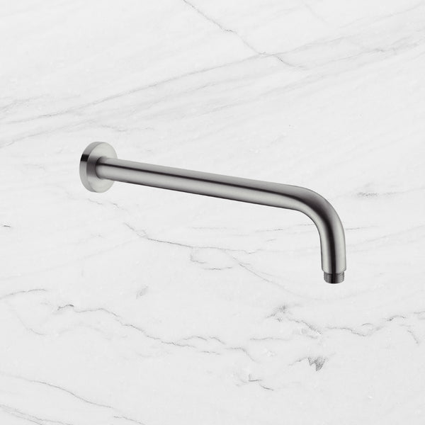 Gooseneck Shower Arms: Gracefully curved arms that arch the showerhead forward, providing extended reach and a classic silhouette that complements both wall and ceiling-mounted fixtures.