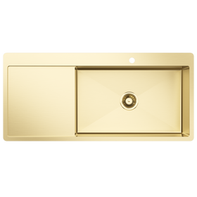 Looking for a larger, uninterrupted space for washing dishes or preparing food? Opt for a brass gold single bowl sink, which offers a larger, more open space that can easily accommodate larger items such as baking sheets or roasting pans.