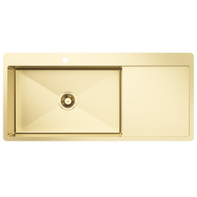 Upgrade your kitchen with a stunning brass gold drainboard sink, and keep your countertop clean and dry while reducing the risk of water damage. Conveniently wash and rinse dishes, then place them on the drainboard to dry, freeing up counter space for other kitchen tasks.