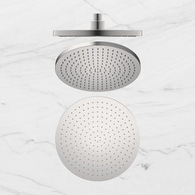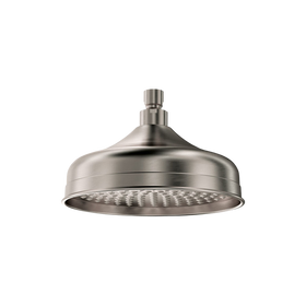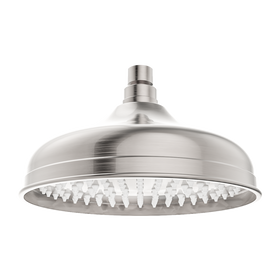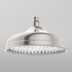 Rain Shower Heads: Wide, overhead coverage for a gentle, spa-like experience. Best matched with brushed nickel ceiling arms for a cohesive statement.
