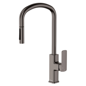If you’re chasing something different, the Fienza Tono range in Gunmetal makes an instant statement. The finish is deep, matte and unmistakably sleek — perfect for modern homes that don’t play it safe. From floor-mounted bath mixers to pull-out sink mixers, every product delivers a high-end feel with everyday functionality built in.