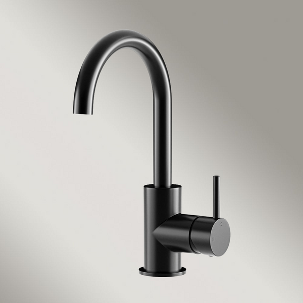 Meir Round Gooseneck Basin Mixer With Cold Start Matte Black