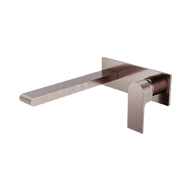 Nero Mecca Wall Basin Mixer Separate Back Plate Handle Up 185mm Spout Brushed Bronze