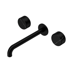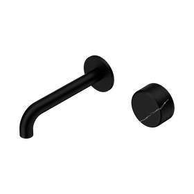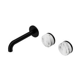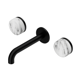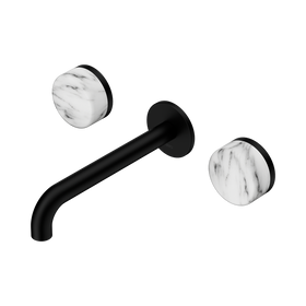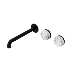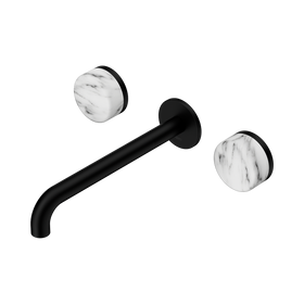 Nero Serenity Progressive Wall Basin Mixer 220mm Spout With Arabescato Corchia Handle Matte Black