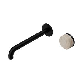 Nero Serenity Progressive Wall Basin Mixer 220mm Spout With Rome Travertine Handle Matte Black