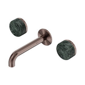 Nero Serenity Wall Basin Set 185mm Offset Spout With Verde Alpi Handle Brushed Bronze