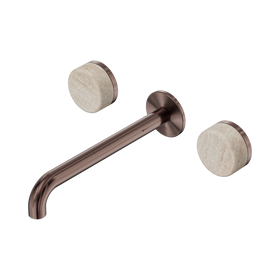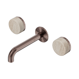 Nero Serenity Wall Basin Set 220mm Spout With Rome Travertine Handle Brushed Bronze