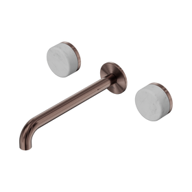 Nero Serenity Wall Basin Set 220mm Offset Spout With Arabescato Corchia Handle Brushed Bronze