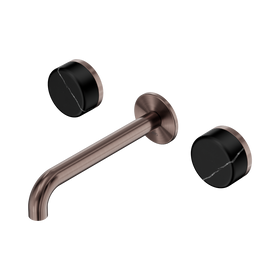 Nero Serenity Wall Basin Set 185mm Offset Spout With Arabescato Corchia Handle Brushed Bronze