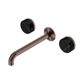 Nero Serenity Wall Basin Set 220mm Spout With Marquina Black Handle Brushed Bronze