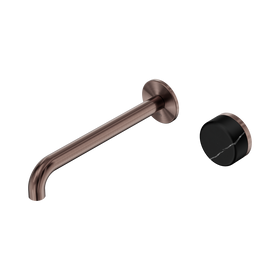 Nero Serenity Progressive Wall Basin Mixer 160mm Spout With Marquina Black Handle Brushed Bronze