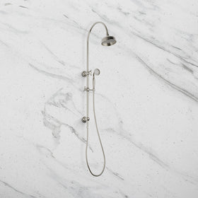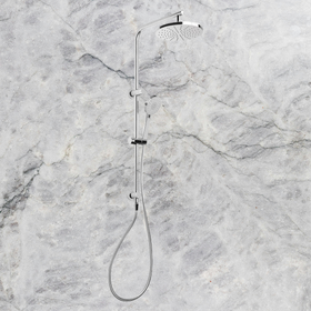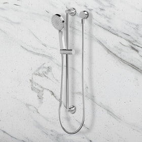 Add a shower rail with height-adjustable handset for versatility, then layer in a rain shower head or dual shower head set for your preferred spray combination. Include a hand held shower head and hose for targeted tasks.