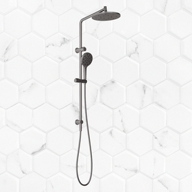Add a shower rail with height-adjustable handset for versatility, then layer in a rain shower head or dual shower head set for your preferred spray combination. Include a hand held shower head and hose for targeted tasks.