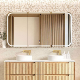 Find sleek pill and arch shapes, matte white and matte black frames, or warm natural oak tones to complement your vanity and bathroom tapware. Brands like Aulic and Otti offer premium bathroom mirror cabinets that combine style with generous storage space. Each piece adds a modern touch to your ensuite or main bathroom while maintaining a cohesive design with other bathroom accessories.