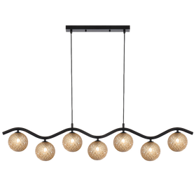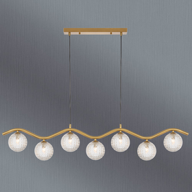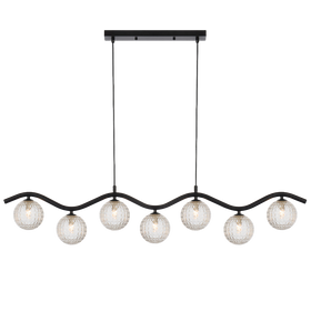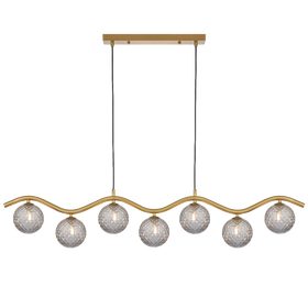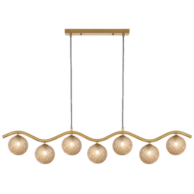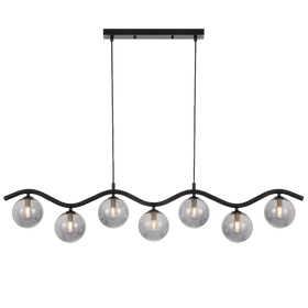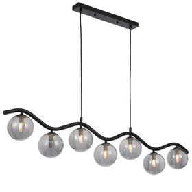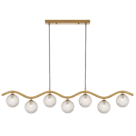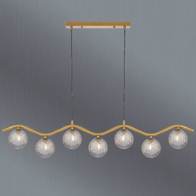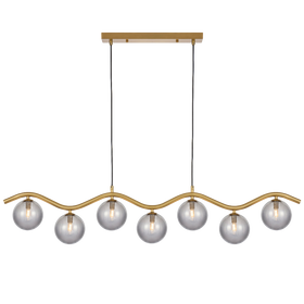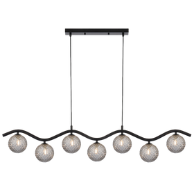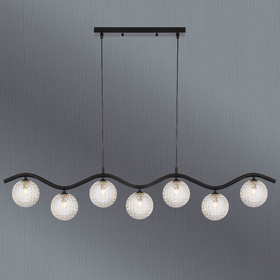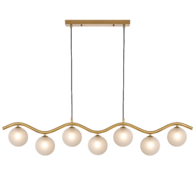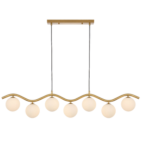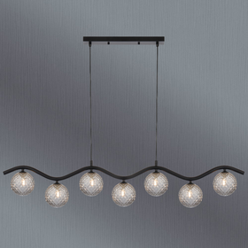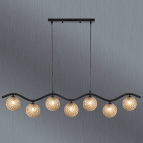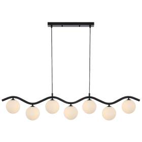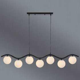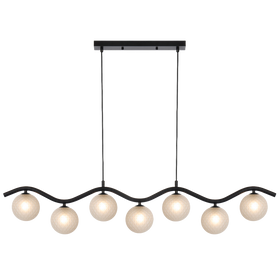 A good guide is to keep the pendant about one-third the width of the table or island below it.