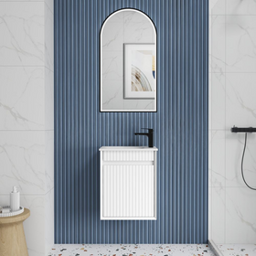 The range includes wall-hung vanities for a floating look that saves space, and freestanding vanities that offer traditional appeal with flexible placement. If you need a compact solution, 600mm vanities, 750mm vanities and 900mm vanities are popular. For larger rooms, 1500mm and 1800mm vanities can fit double basins for shared use. Curved designs create softer visual flow, while integrated sink vanities deliver a seamless, low-maintenance option.