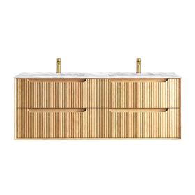 For Japandi and warm-toned interiors, solid timber vanities and woodgrain finishes with brushed brass tapware create a rich, layered result. For something with more texture and character, fluted vanities and curved vanities are two of the strongest current trends in Australian bathroom design — both work beautifully with above counter basins for a statement benchtop moment.