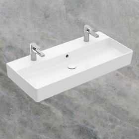 Villeroy & Boch Avento 1000mm Rectangular Wall Hung Basin 2 Tap Holes Alpine White