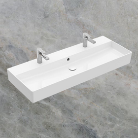 Villeroy & Boch Memento 2.0 1200mm Rectangular Wall Hung Basin with Overflow 2 Tap Holes Alpine White