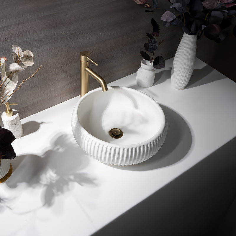Fluted basins add depth, texture, and elegance through their vertically grooved surface, making them a standout design feature in any space. The ribbed detailing plays with light and shadow, creating visual interest even in monochrome colour palettes.