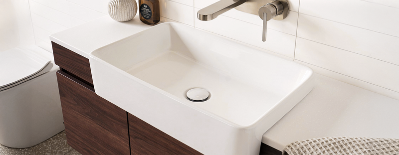 Their raised profile gives you more storage inside the vanity and allows for flexible pairing with tall or wall-mounted tapware. You’ll also find more variety in shapes, colours, and materials since the basin isn’t confined to a cut-out.