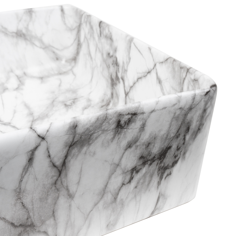Marble look basins mimic the beauty of natural stone with less cost, weight, and maintenance. Their veined finish creates timeless appeal, working well in luxury, Hamptons, or classic-inspired bathrooms.