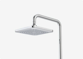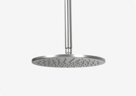 Not sure if your ceiling is too low for a rain shower? A wall-mounted drop arm can give you that overhead feel, without the awkward angles or plumbing reroutes.