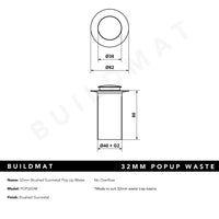 Alma 32mm Brushed Gunmetal Pop Up Waste