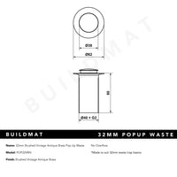 Alma 32mm Brushed Vintage Antique Brass Pop Up Waste