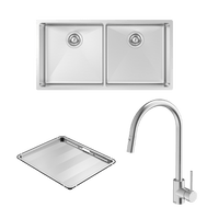 Abey Alfresco 400 Double Bowl Sink With Drain Tray and Dual Spray Kitchen Mixer Stainless Steel
