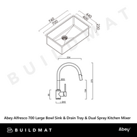 Abey Alfresco 700 Large Bowl Sink With Drain Tray and Dual Spray Kitchen Mixer Stainless Steel