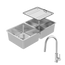 Abey Lago Double Bowl Sink Package With 304 Gooseneck Pull Out Kitchen Mixer Stainless Steel
