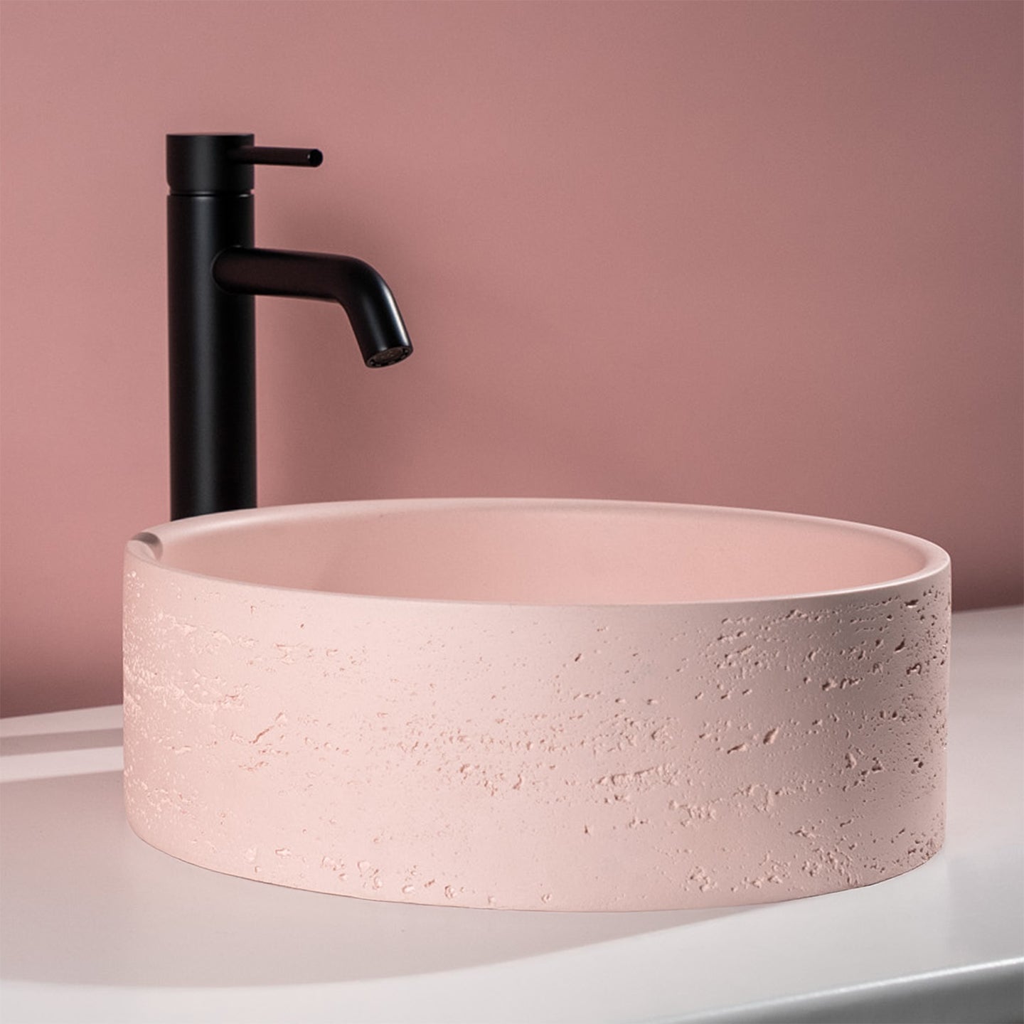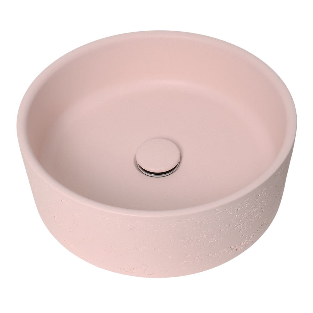 Amos Circle Rustic Concrete Basin Champagne Pink