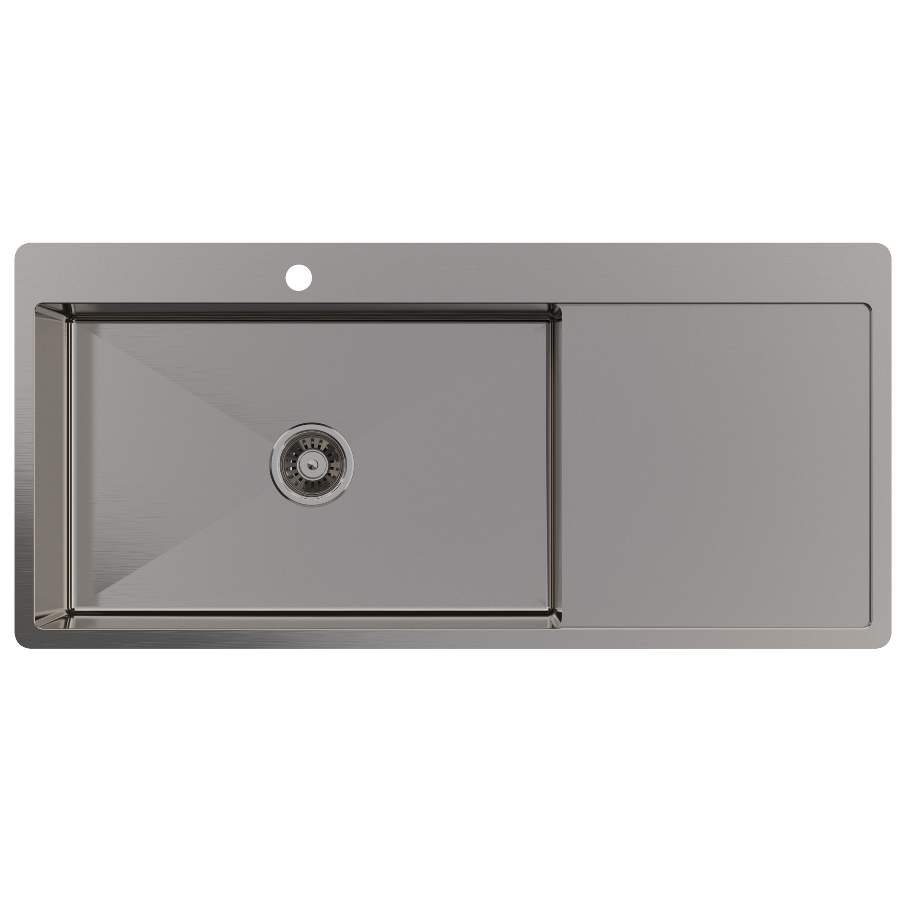 Brushed Gunmetal Iver 1080x500 Single Bowl Tap Landing with Right Drain Board Sink