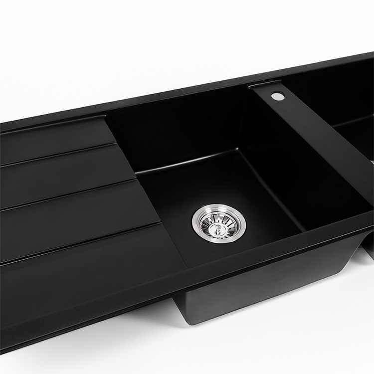 Darlene 1200x500 Black Granite Left Drainboard Double Bowl Tap Landing Sink