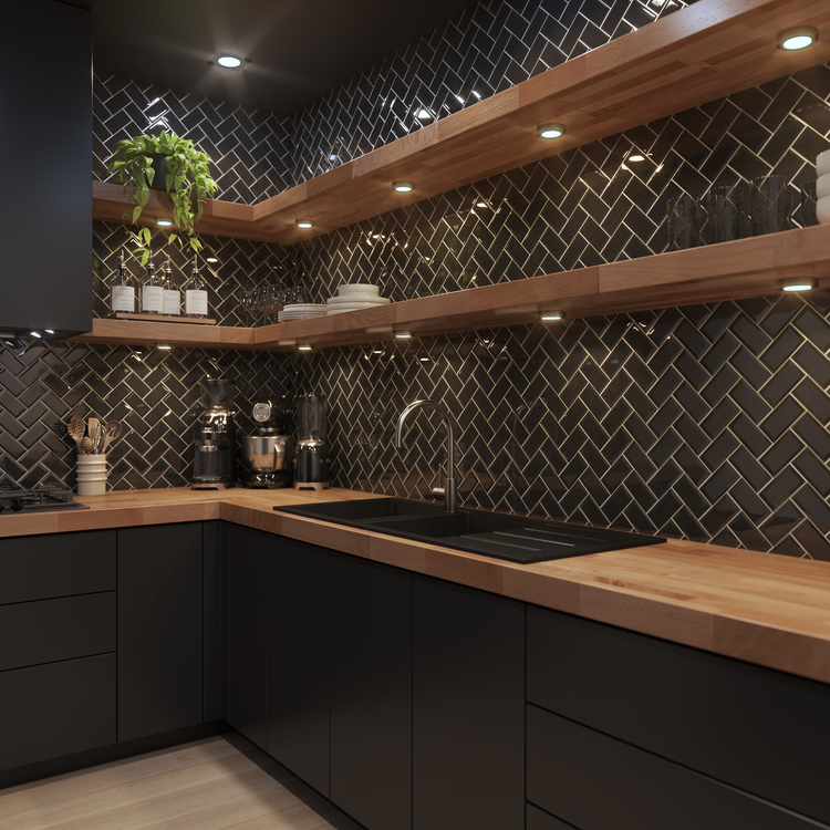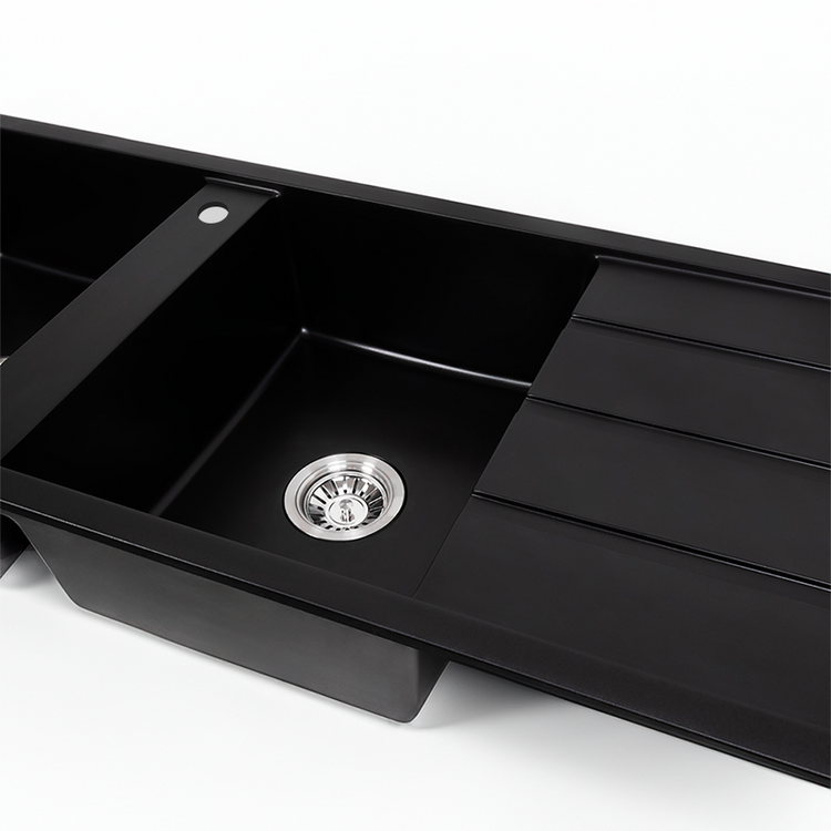 Darlene 1200x500 Black Granite Right Drainboard Double Bowl Tap Landing Sink