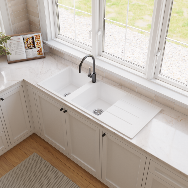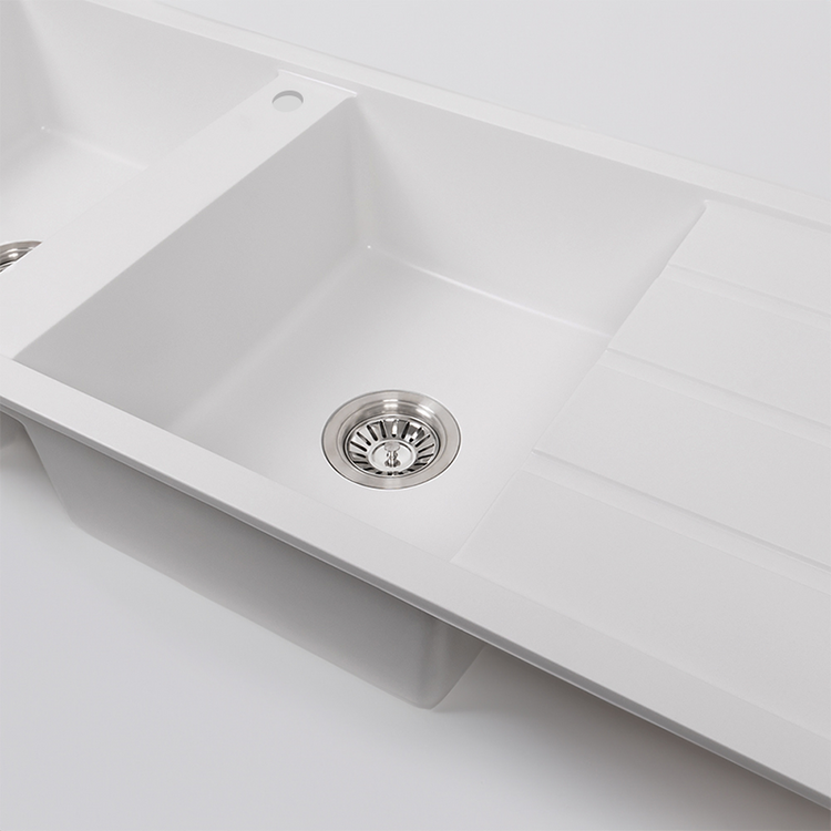 Darlene 1200x500 White Granite Right Drainboard Double Bowl Tap Landing Sink
