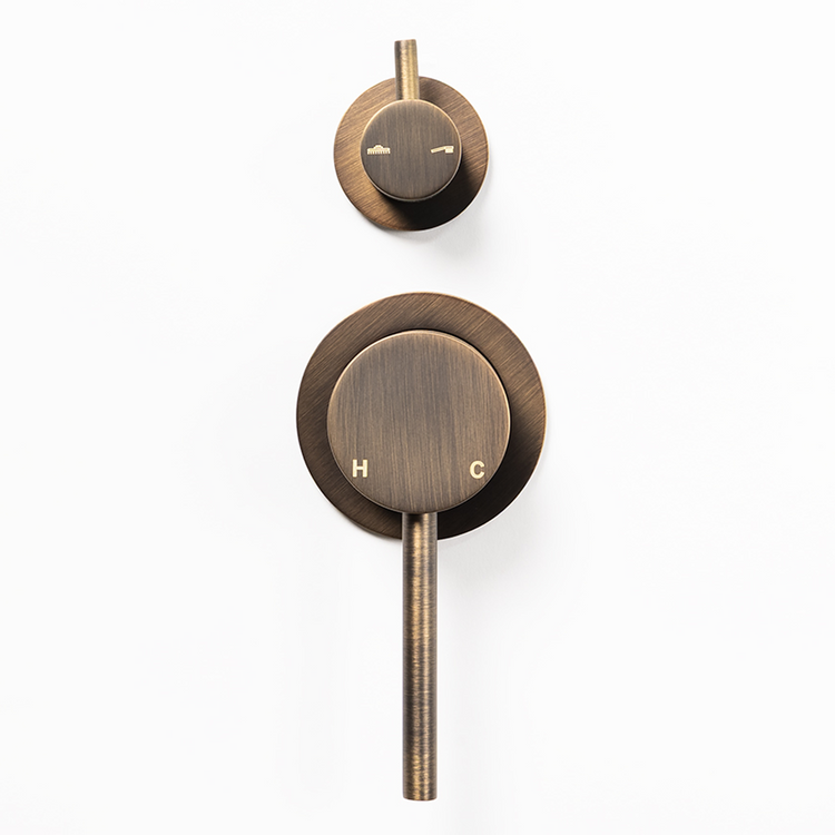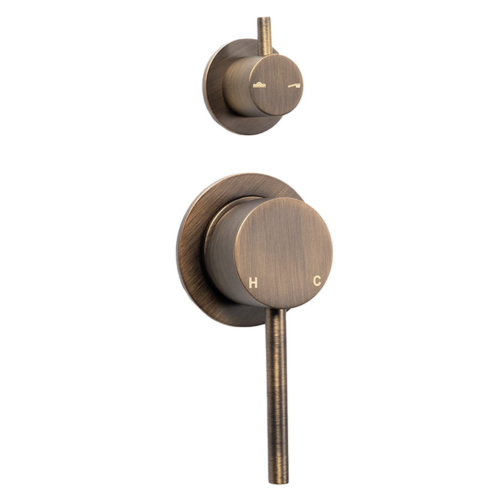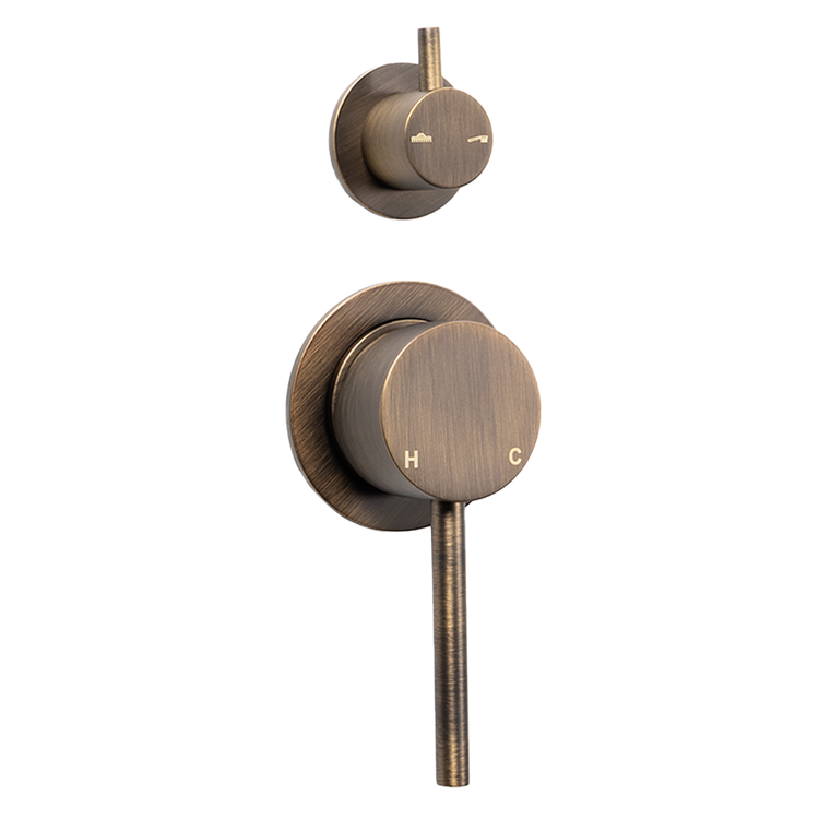 Mira Brushed Vintage Antique Brass Wall Mixer with Turn Divertor