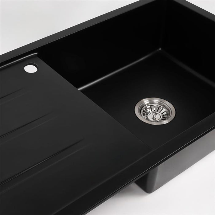 Randall 1000x500 Black Granite Left Drainboard Single Bowl Tap Landing Sink