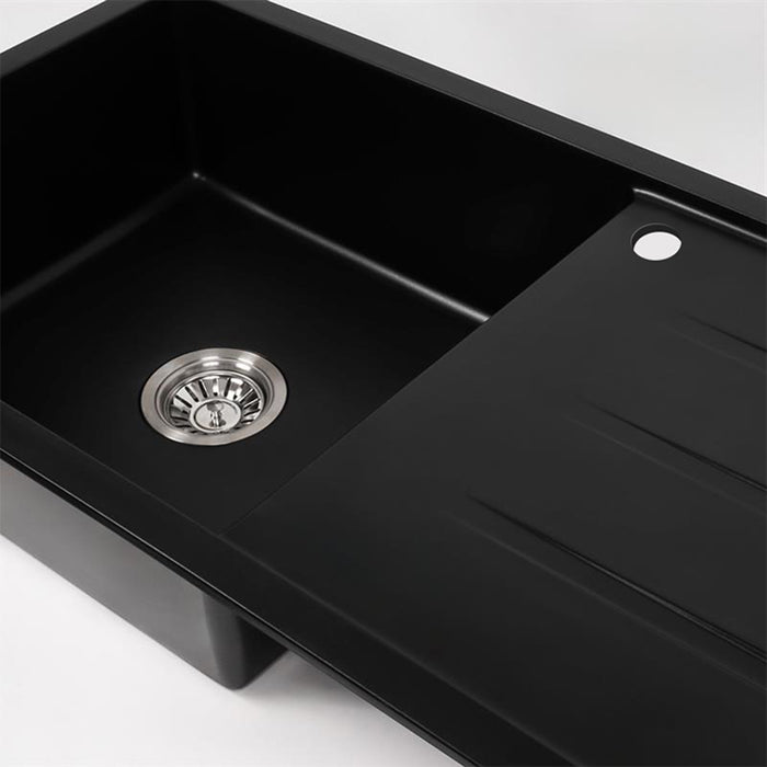 Randall 1000x500 Black Granite Right Drainboard Single Bowl Tap Landing Sink
