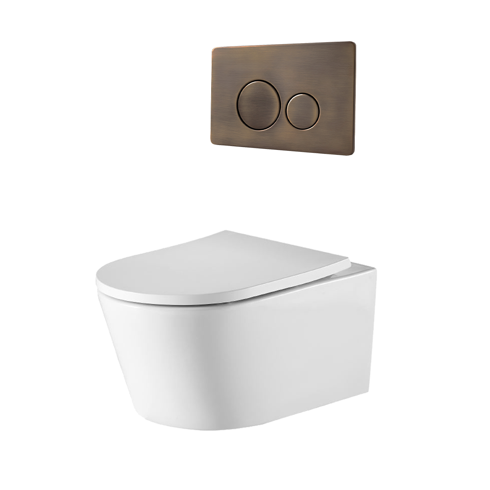 Vintage Antique Brass Wall Hung Rimless Toilet Suite with Circle Buttons