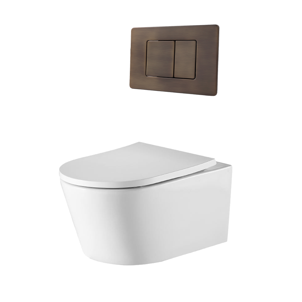 Vintage Antique Brass Wall Hung Rimless Toilet Suite with Square Buttons