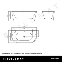 Arcisan Axus Back To Wall 1700mm Acrylic Bath with Overflow Gloss White