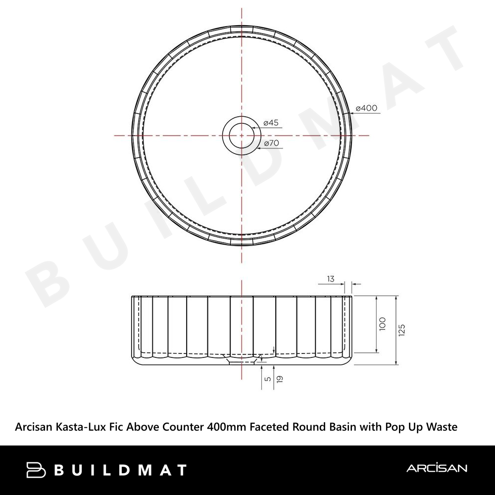 Arcisan Kasta-Lux Fic Above Counter 400mm Faceted Round Basin with Pop Up Waste Charcoal