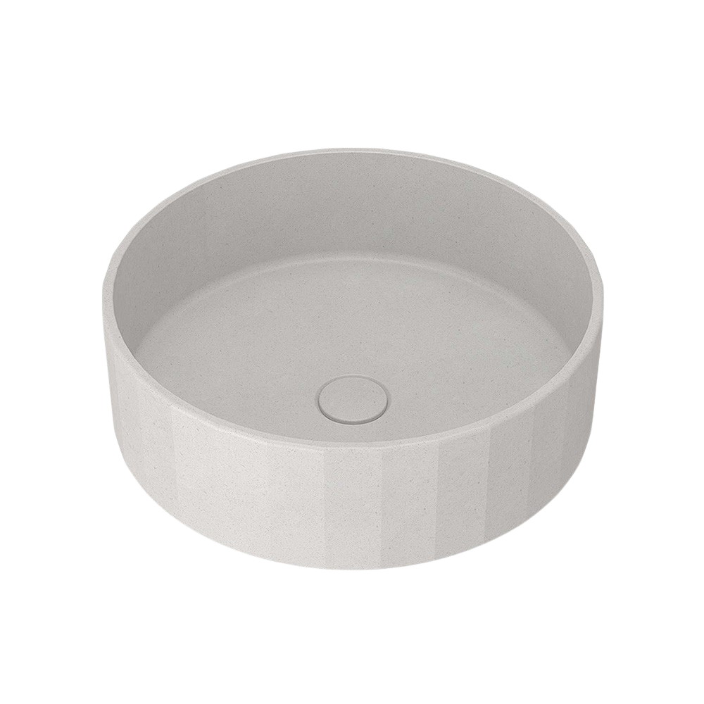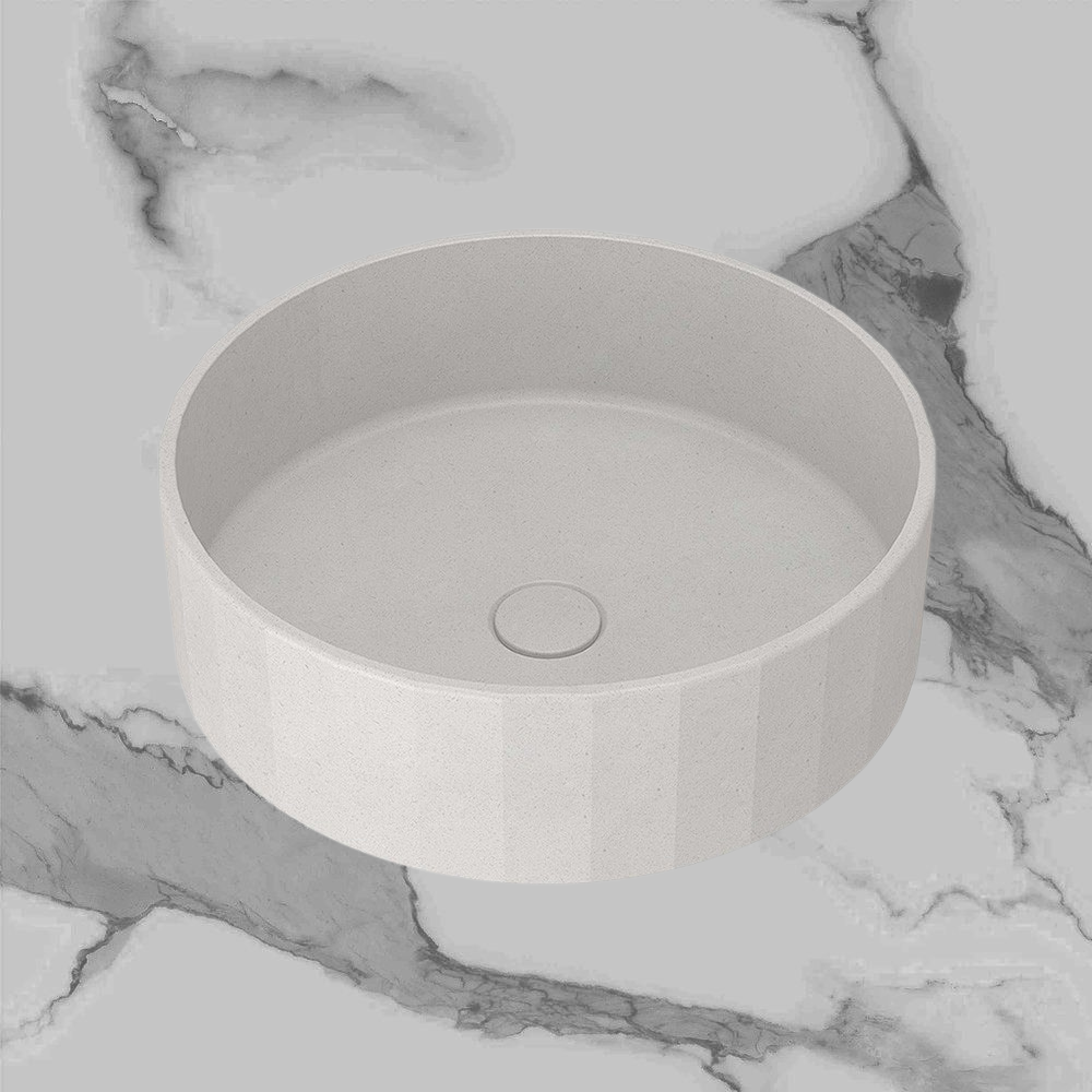 Arcisan Kasta-Lux Fic Above Counter 400mm Faceted Round Basin with Pop Up Waste White Stone