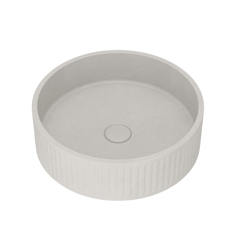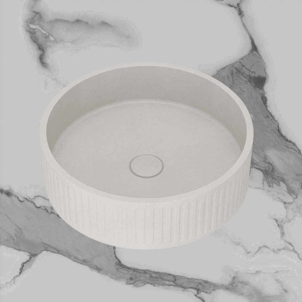 Arcisan Kasta-Lux Fic Above Counter 400mm Ribbed Round Basin with Pop Up Waste White Stone