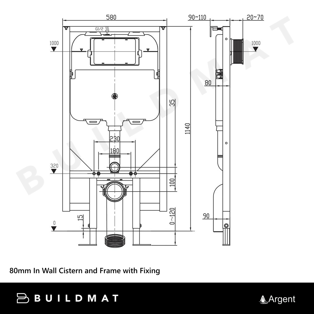 Argent 80mm In Wall Cistern and Frame with Pneumatic Fixing